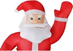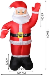 Grande décoration de Noël qui ravira enfants et adultes. Père Noël gonflable avec éclairage LED et hauteur de 180 cm, auto-gonflant, résistant aux intempéries (IP44) et prêt pour une utilisation en extérieur comme en intérieur. Le colis comprend des piquets, des haubans et un adaptateur pour une installation rapide et sécurisée.