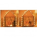 Apportez une atmosphère féérique à la chambre d’enfant. Cette tente en tissu en forme de maisonnette crée un coin douillet pour la lecture, la détente et des jeux sans fin. Elle comprend une guirlande de 20 boules en coton LED à lumière blanc chaud, qui crée une ambiance agréable. L’entrée avec rideaux et deux fenêtres en fine maille assurent l’intimité et la circulation de l’air.