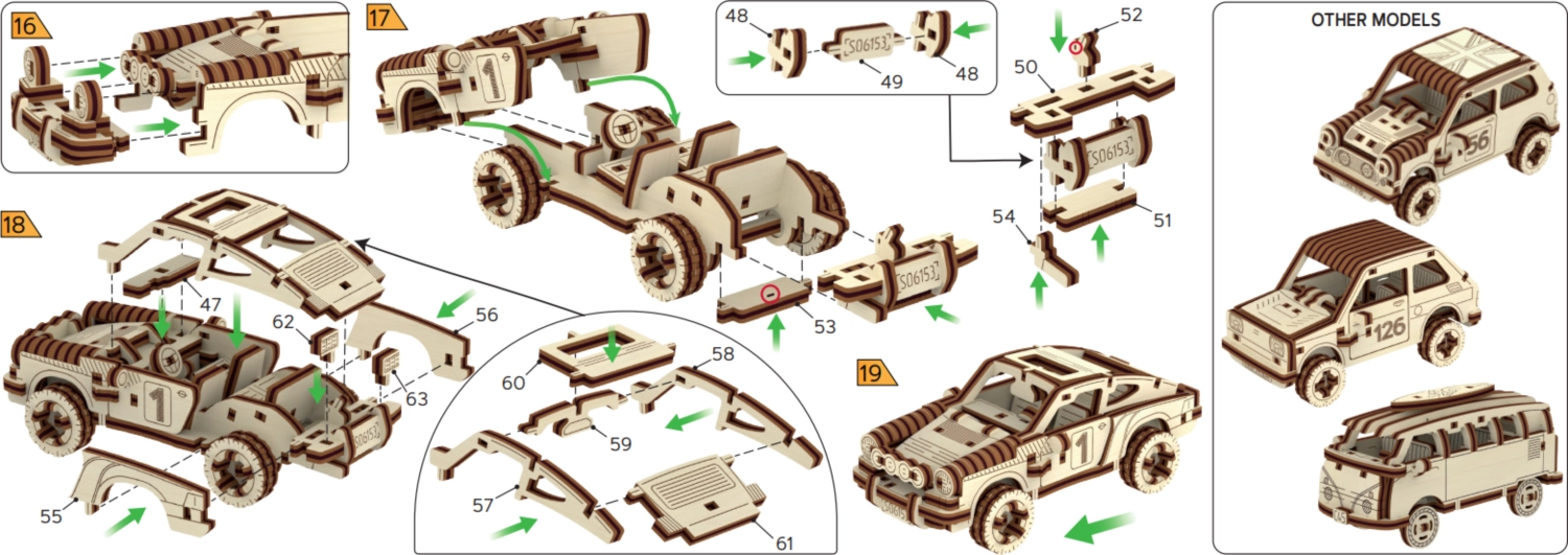 Les pièces finement découpées en contreplaqué de bouleau s’emboîtent avec précision. L’assemblage prend environ 40 minutes et il est accessible grâce à une difficulté facile. Inspiré par l’univers du sport automobile, il ravira les enfants en âge scolaire comme les adultes passionnés.