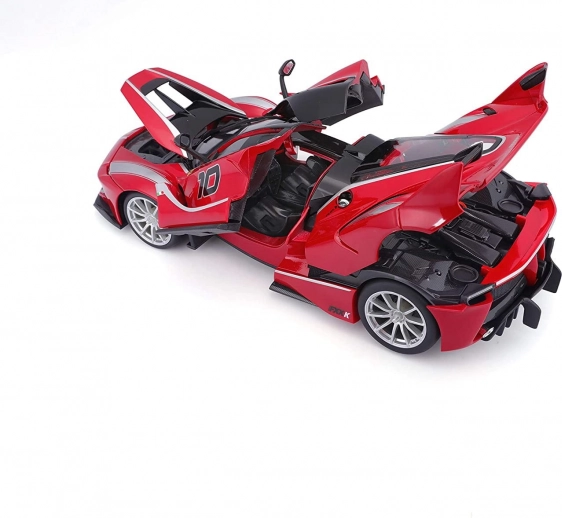 Ce modèle de voiture Ferrari FXX K détaillé de la marque Bburago à l’échelle 1:18 incarne parfaitement la vitesse et l’élégance. Sa peinture métallisée rouge vif confère à ce modèle une allure impressionnante et sportive qui attire le regard au premier coup d’œil.
