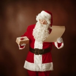 pantalon, veste, couvre-bottes (2 pcs), ceinture, bonnet, perruque, barbe avec moustache, gants (2 pcs), lunettes, sac à cadeaux, clochette