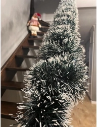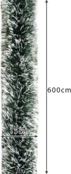 Cette guirlande décorative imite fidèlement des aiguilles enneigées et constitue un excellent choix pour la décoration de Noël en intérieur. Sa longueur de 6 mètres assure une couverture suffisante pour les sapins de plus de 220 cm, mais aussi pour orner escaliers, appuis de fenêtre ou encadrements de porte. Sa structure dense et généreuse offre un support idéal pour les guirlandes lumineuses et autres ornements.