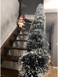 Les aiguilles vertes aux pointes blanches créent un effet « givré » naturel, comme fraîchement poudré de neige, pour un rendu superbe sur le sapin comme sur la rambarde.