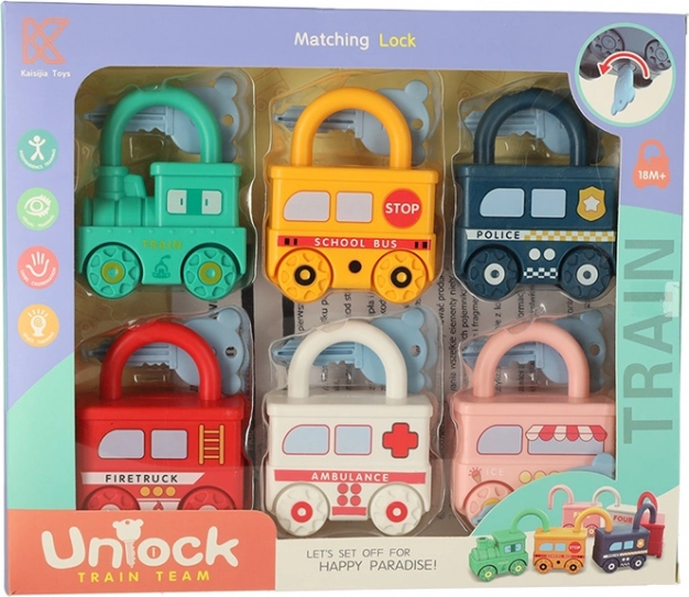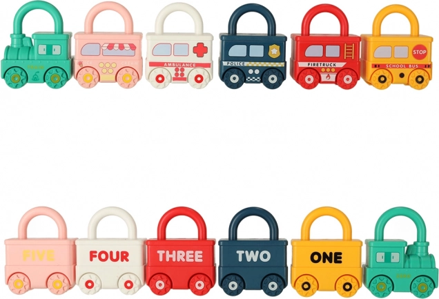 Un set éducatif ludique pour les tout-petits qui allie plaisir et apprentissage. Dès 18 mois, les enfants entraînent leur motricité fine en déverrouillant des véhicules colorés avec des clés et apprennent à distinguer les couleurs et les nombres. Le coffret comprend 6 véhicules – une locomotive, un bus scolaire, une voiture de police, un camion de pompiers, une ambulance et un camion de glaces – ainsi que 7 clés dont une universelle. Une fois ouverts, les véhicules peuvent être reliés en un petit train pour un jeu créatif supplémentaire. La conception en plastique sans arêtes vives et les couleurs vives garantissent de longues heures de divertissement enrichissant.