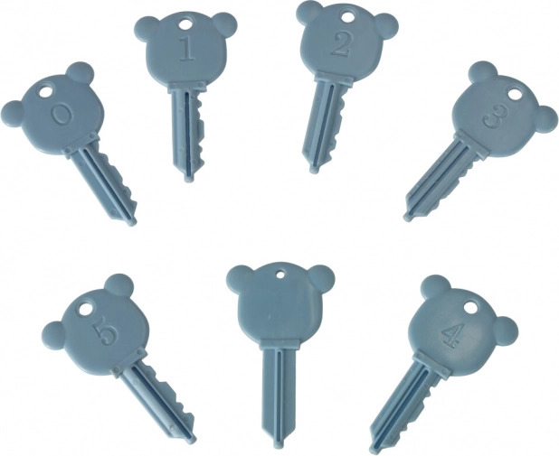 Grâce aux illustrations recto-verso, les enfants s’exercent à reconnaître les véhicules et les couleurs de base. Le set est fabriqué en plastique de qualité sans bords tranchants, ce qui le rend résistant et sûr pour un jeu quotidien. L’emballage contient 6 véhicules et 7 clés, dont une clé magique qui ouvre toutes les serrures.