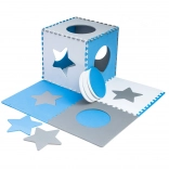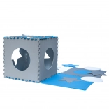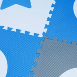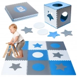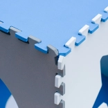 Ce tapis en mousse pédagogique gris‑bleu‑blanc composé de 9 grandes dalles transforme toute pièce en espace de jeu sûr et confortable. Les pièces s’emboîtent comme un puzzle et permettent de créer une grande surface pour ramper, faire ses premiers pas et jouer calmement.