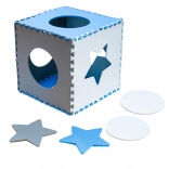 Les étoiles et les ronds se retirent et se remettent en place. L’enfant exerce sa motricité fine, sa coordination et la reconnaissance des formes.