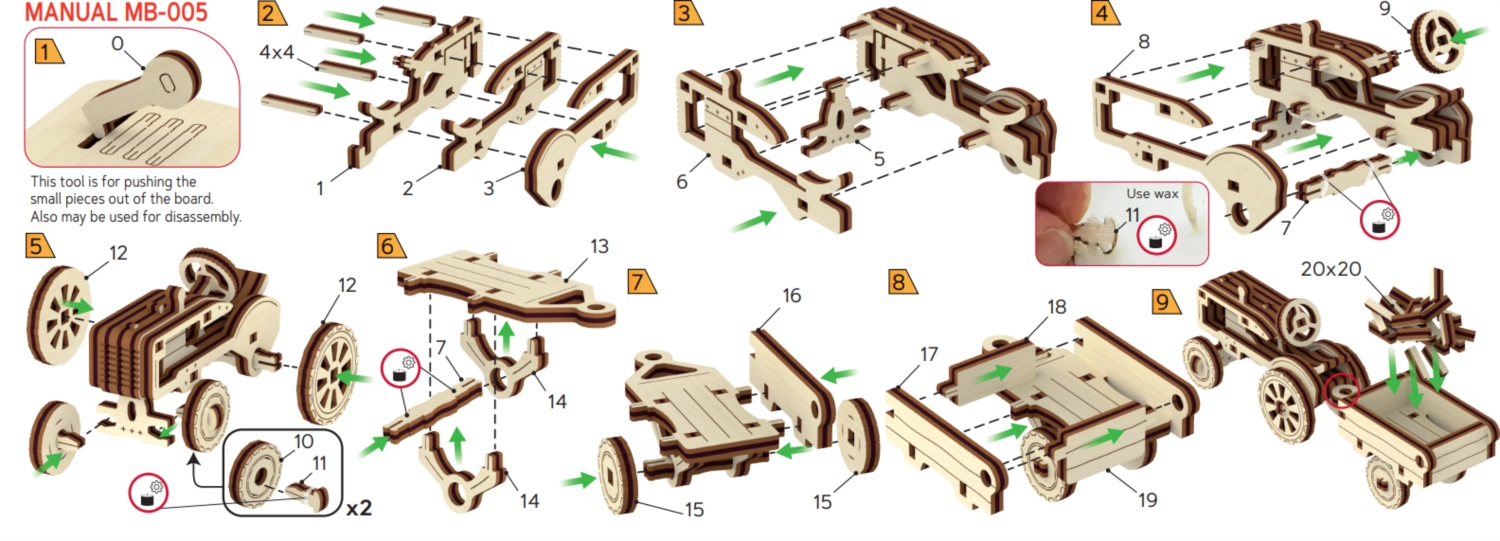 Le montage prend environ 30 minutes et, grâce à des instructions claires, il convient même aux grands débutants. Le modèle fini en contreplaqué de bouleau naturel se distingue par ses riches détails, ses roues mobiles et son agréable aspect bois, parfait pour tout intérieur – de la chambre d’enfant au bureau.
