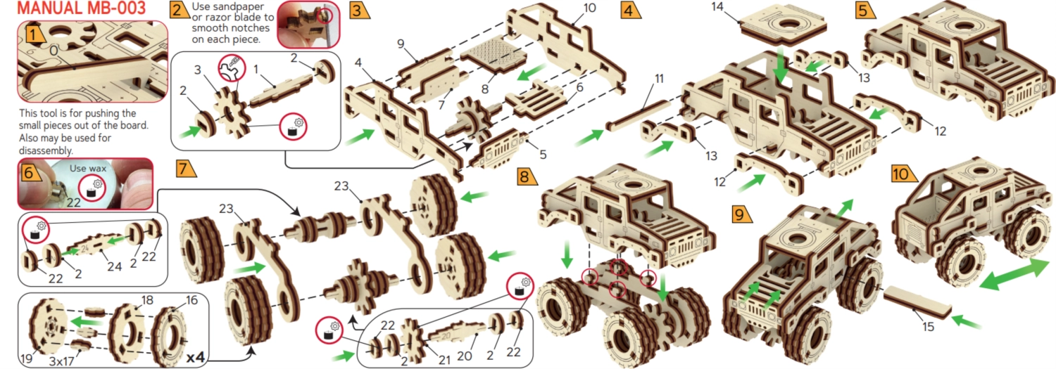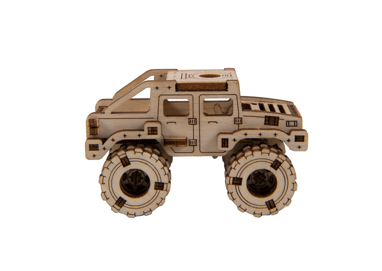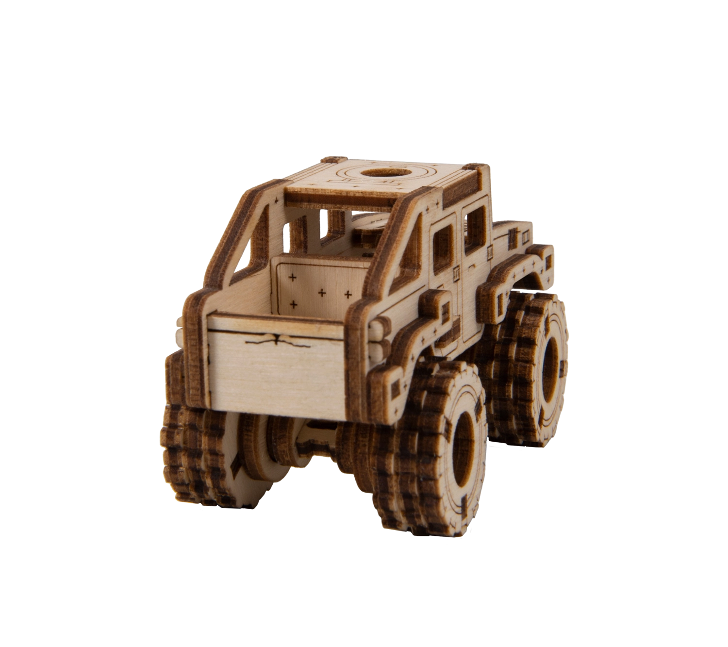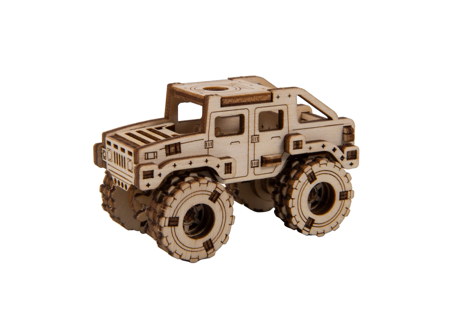 Ce modèle Monster Truck 2 est conçu pour un montage rapide et agréable – sans colle, sans désordre, avec un maximum de plaisir au résultat. Grâce aux découpes laser précises, les pièces s’emboîtent parfaitement et, au bout de 30 minutes, vous obtenez une voiture robuste aux grandes roues, parfaite sur une étagère ou un bureau.