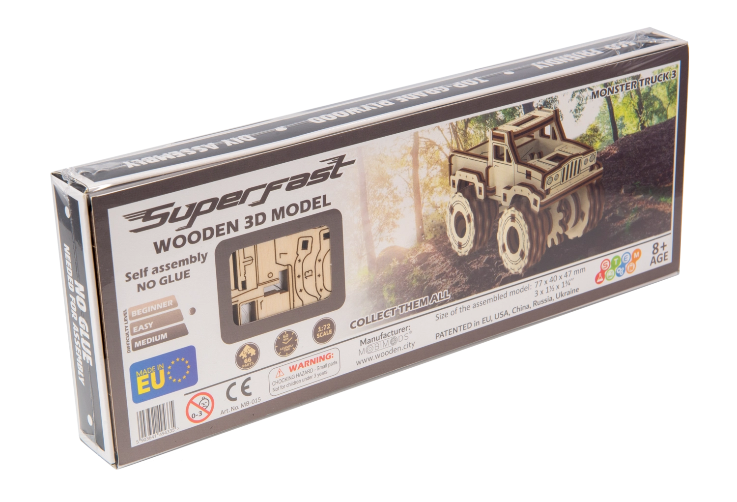 Découvrez la magie des modèles mécaniques en bois : ce puzzle 3D de monster truck s’assemble sans colle ni vis, se monte rapidement et convient aussi bien aux débutants qu’aux avancés. Profitez d’un divertissement créatif, d’un assemblage facile et d’une finition détaillée en contreplaqué de bouleau. Le modèle fini est une superbe décoration et une excellente idée cadeau pour les passionnés de MONSTER TRUCKS.