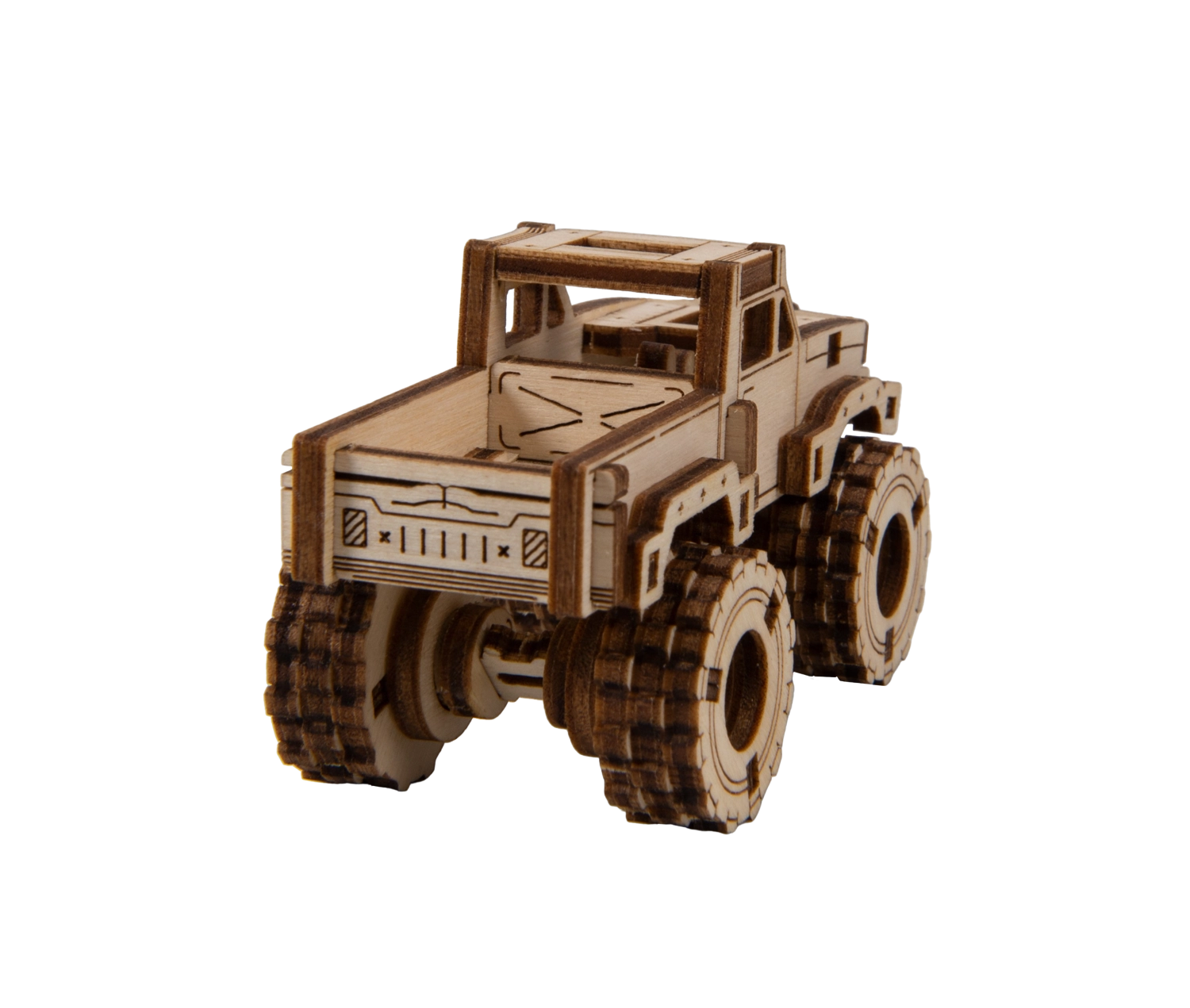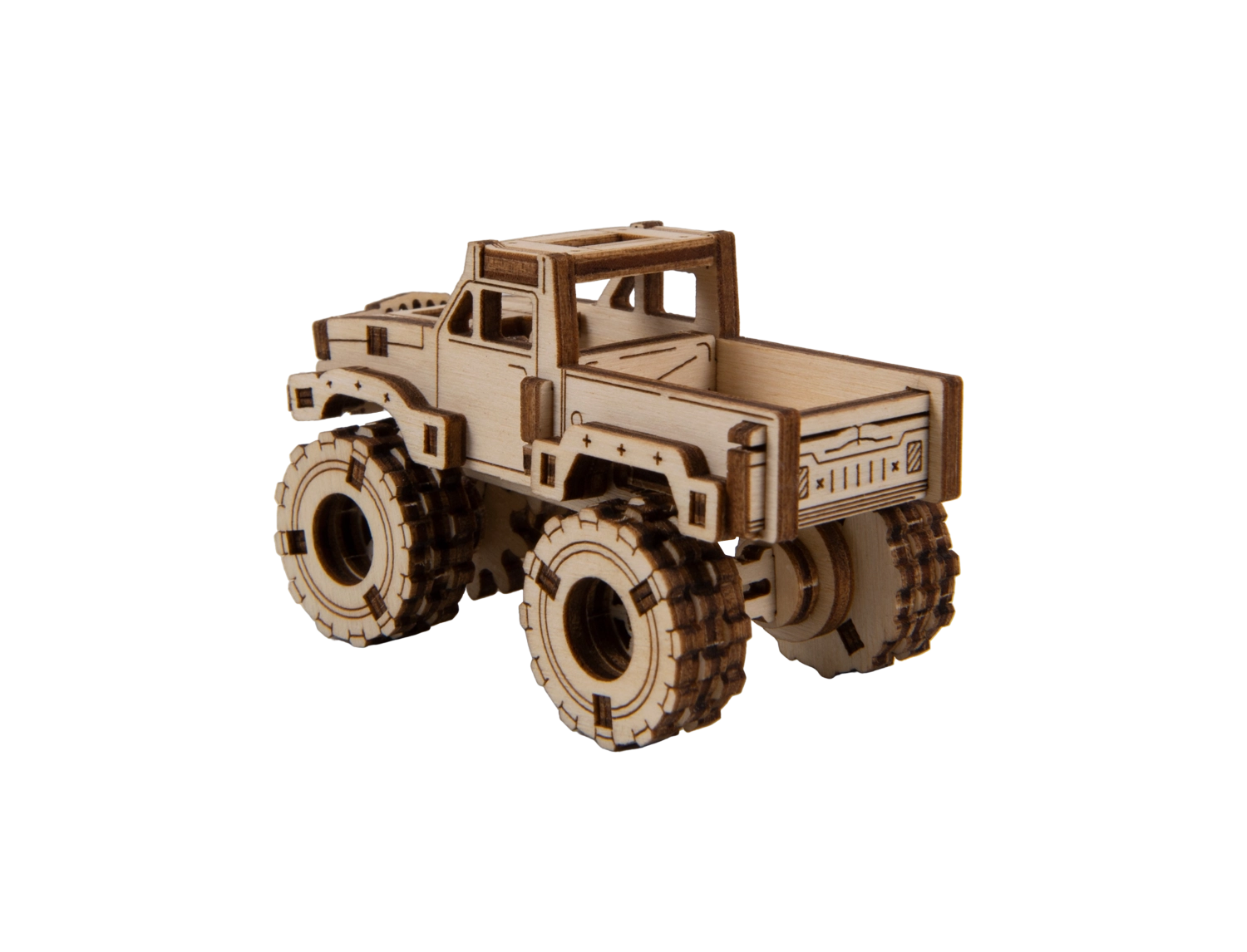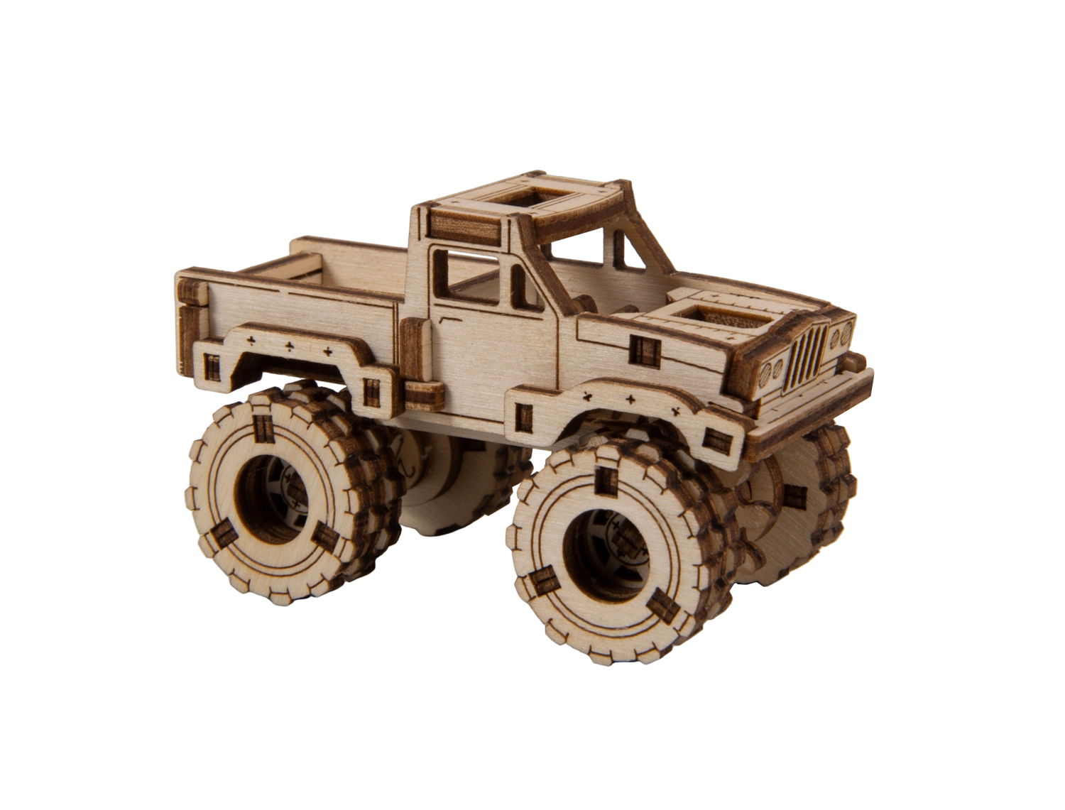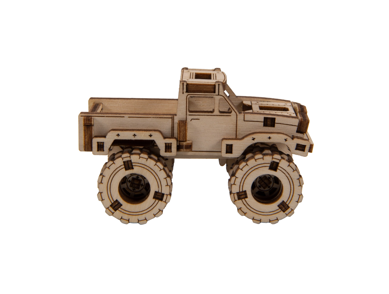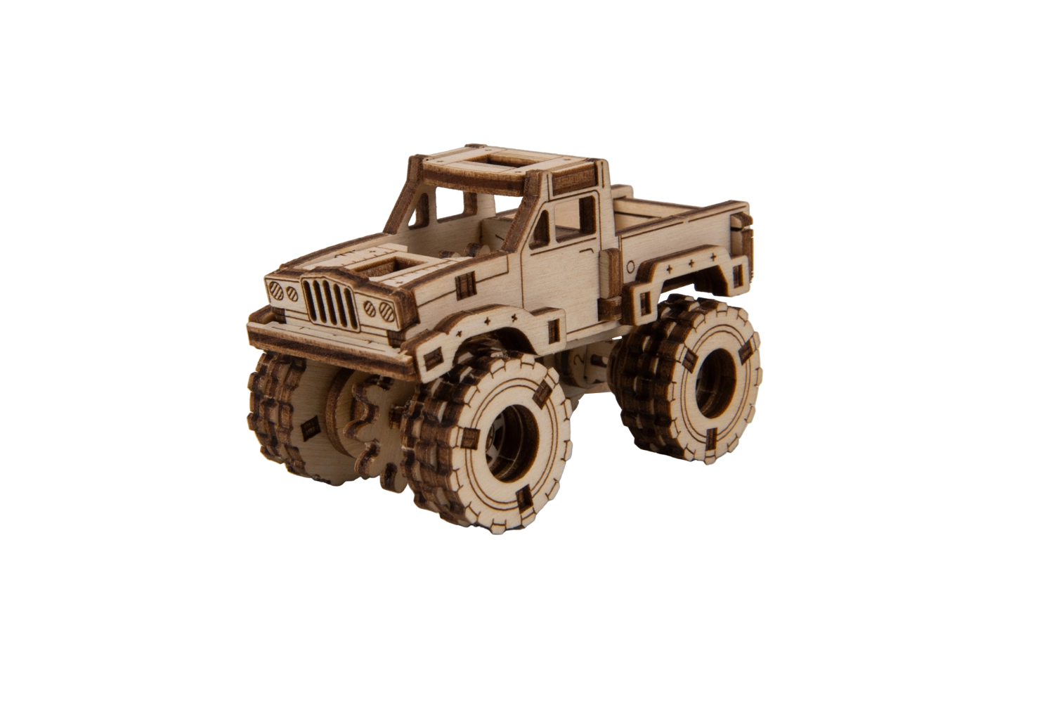 Ce puzzle 3D en bois MONSTER TRUCK 3 offre une expérience de construction unique – sans colle, sans désordre, avec une précision maximale des découpes. Le modèle s’inspire des premiers camions militaires américains d’après‑guerre et affiche un look tout‑terrain authentique avec de grandes roues et une cabine robuste.