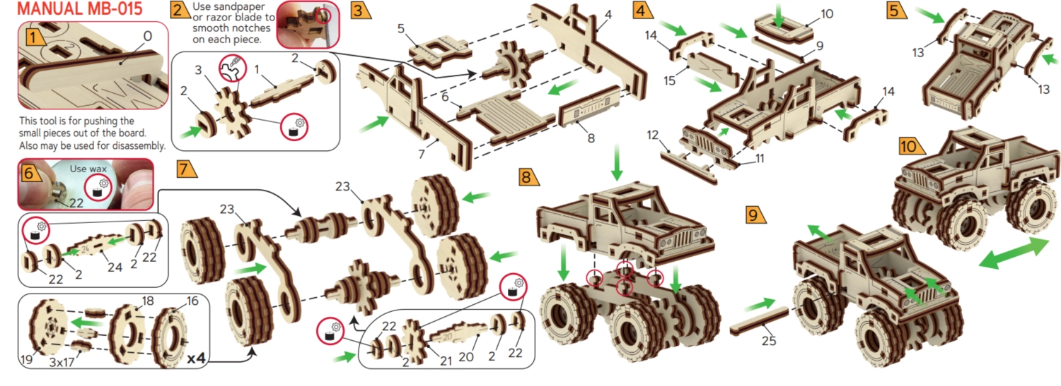 - 66 pièces précises – découpes laser nettes pour un assemblage fluide.