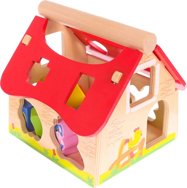 Cette petite maison en bois – jeu d’encastrement sur le thème de la ferme – offre de nombreuses découvertes aux enfants. Grâce aux ouvertures de formes variées et à l’ensemble de 12 blocs, les enfants s’exercent au tri des formes, aux couleurs et à la reconnaissance des animaux. Le jouet favorise la concentration, la patience et la joie de la réussite à chaque pièce correctement insérée.