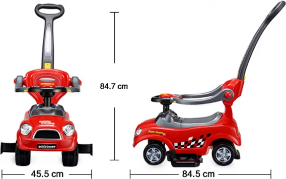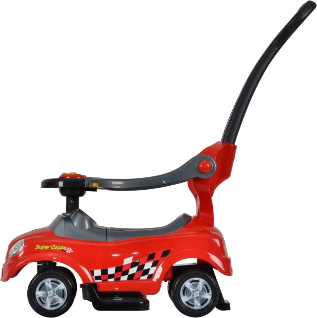 La solution astucieuse 3-en-1 propose trois modes d'utilisation: mode sécurisé avec arceaux de protection et repose-pieds pour les plus petits, mode avec barre de guidage pour un contrôle facile par le parent, et porteur classique pour une conduite autonome lorsque l'enfant touche le sol avec les pieds. C'est donc un jouet polyvalent qui grandit avec votre enfant et s'adapte à ses compétences.