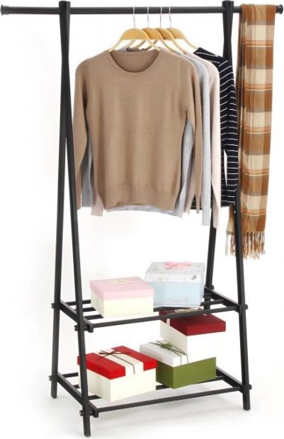 Portant à vêtements en métal avec 2 étagères, noir MODERNHOME