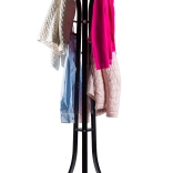 Trois bras supérieurs avec deux points d’accrochage chacun et trois crochets inférieurs offrent de la place pour vestes, chapeaux et parapluies.