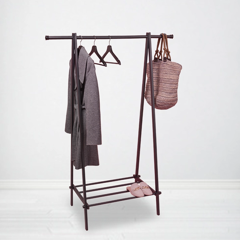 Portant à vêtements en métal pratique avec tringle supérieure pour cintres et étagère inférieure pour chaussures et accessoires, il vous aide à garder de l’ordre dans l’entrée, la chambre ou le dressing. Grâce à sa structure en acier résistant avec peinture époxy, il est stable, facile à nettoyer et s’intègre parfaitement à un intérieur moderne.