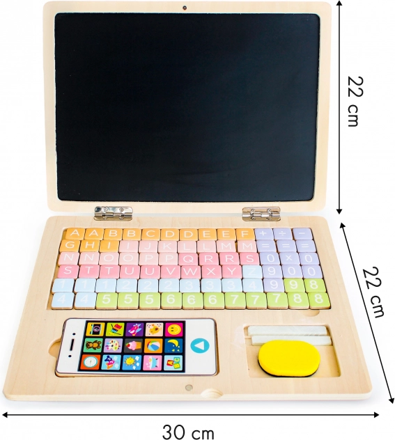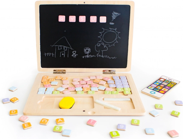 Offrez aux enfants un apprentissage ludique avec l’ordinateur portable en bois ECO TOYS. Grâce à la combinaison d’un clavier magnétique et d’un tableau à craie, ils peuvent composer des mots, de simples opérations, dessiner et effacer à l’infini. La structure en bois solide, sans bords tranchants, garantit un jouet 100 % sûr et robuste.