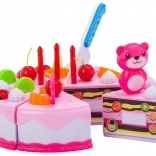 - Accessoires riches : roulé en plusieurs parties, cupcake, biscuits, gelée, couverts, assiettes, couteau, décorations (bougies, fruits, lapins) et coupe de glace en 12 pièces.
