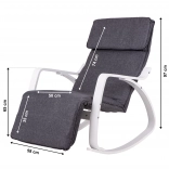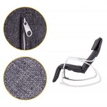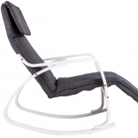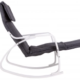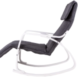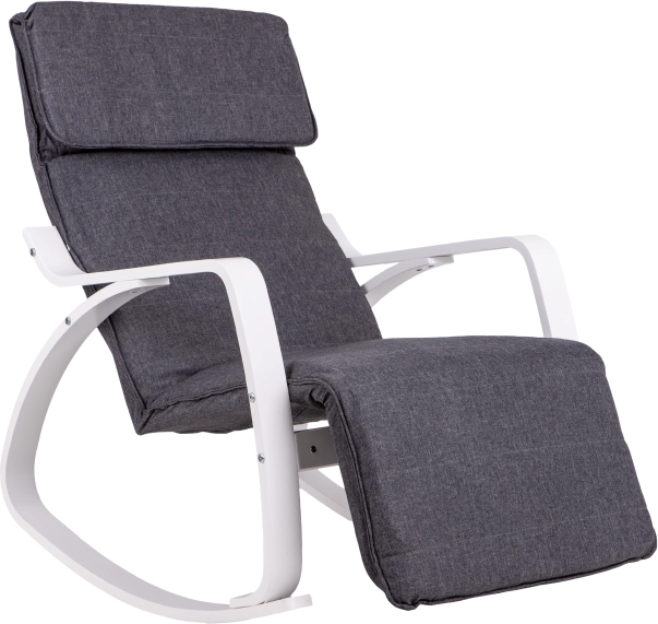 Le fauteuil à bascule ModernHome est conçu pour un confort et une tranquillité maximaux. Sa structure métallique solide en finition blanche est complétée par un rembourrage en tissu gris offrant un siège confortable. Grâce à la régulation à cinq niveaux du repose-pieds, vous pouvez facilement ajuster la position idéale.