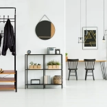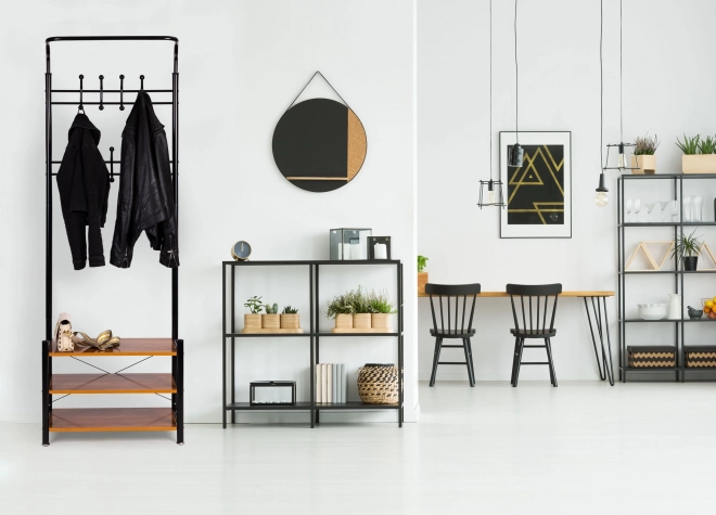La construction métallique à quatre pieds garantit la stabilité même sous une forte charge. Le design moderne et universel du portemanteau convient à tous les intérieurs, et grâce aux capuchons de protection, le sol est protégé contre les rayures.