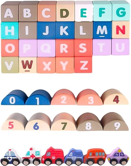 Sur l'arrière des blocs, on trouve des lettres et des chiffres, favorisant ainsi le développement des compétences en lecture et en mathématiques. L'apprentissage est ainsi formé par le jeu, où les enfants construisent non seulement la ville, mais apprennent aussi à connaître les lettres et les chiffres.
