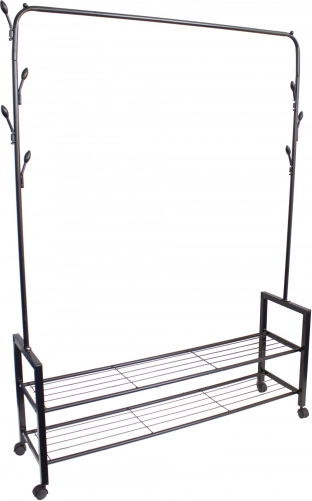 Le portant dispose d’une structure métallique robuste et stable avec revêtement par poudre. Les crochets décoratifs latéraux offrent un espace supplémentaire pour suspendre un sac, une écharpe ou un chapeau. Les étagères spacieuses sont idéales pour les accessoires et les chaussures.