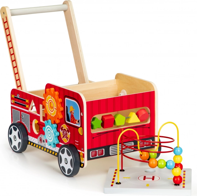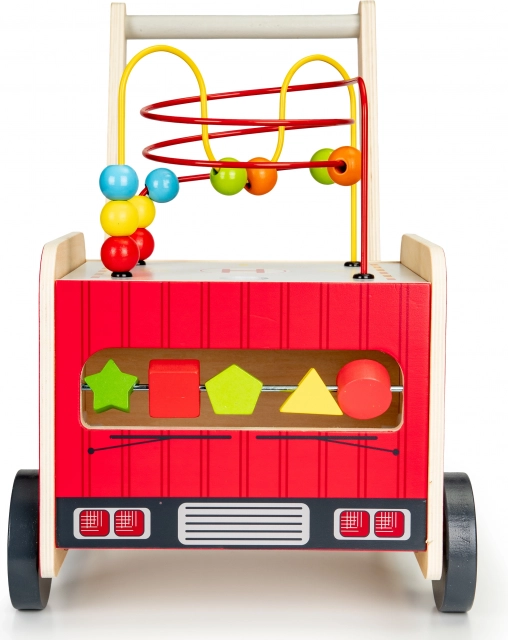 Le chariot en bois en forme de camion de pompier est l'outil idéal pour les premiers pas de votre enfant. Il est conçu pour offrir de la stabilité tout en fournissant du plaisir grâce à différents éléments interactifs comme des engrenages, labyrinthes de perles et trieurs de formes.
