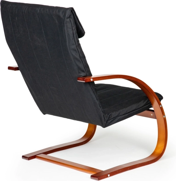 Profitez de moments de détente dans un fauteuil qui associe design moderne et ergonomie. Le mécanisme de bascule apaise et soulage le dos, tandis que le rembourrage moelleux à garnissage en mousse garantit le confort pour la lecture, la relaxation ou regarder la télévision. Le contraste entre le tissu noir et le bois de noyer souligne le caractère de chaque intérieur.