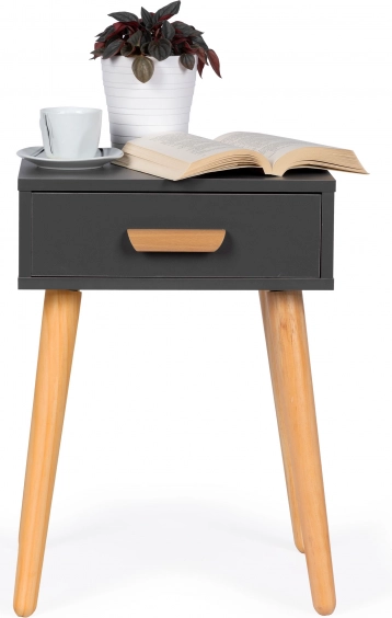 Fait office de table de chevet près du lit ou de table d’appoint/table basse près du canapé. Son format compact économise de la place tout en offrant une surface pratique et un tiroir.