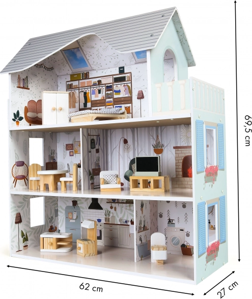 La Maison de poupées Résidence Emma de ECOTOYS est un cadeau idéal qui illuminera non seulement la chambre des enfants, mais charmera également l'ensemble du foyer. Ses couleurs douces et agréables s'harmonisent avec tout type d'intérieur. La maison est conçue pour jouer avec de plus grandes poupées et offre des pièces spacieuses pour le jeu libre.