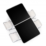 L'ensemble se plie dans une valise pratique où toutes les chaises et la table se rangent en toute sécurité. Cela facilite son transport même dans les espaces réduits.