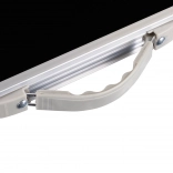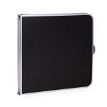 Sous forme de valise pratique, l'ensemble se range et se transporte facilement. Sa structure métallique garantit durabilité et les chaises supportent jusqu'à 100 kg, offrant stabilité tout en étant légères.