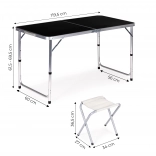 Notre ensemble de camping pliable offre la solution idéale pour vos activités extérieures. Avec une construction stable et la hauteur ajustable de la table, il est parfait pour les repas en famille, la préparation des repas ou les jeux du soir. Grâce à son design compact, il est facilement transportable.