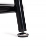 La table se compose d’un cadre métallique robuste avec finition peinture poudre et de deux étagères en panneau de particules avec placage imitation bois. Des pieds réglables permettent un nivellement parfait de la table et protègent le sol des rayures.