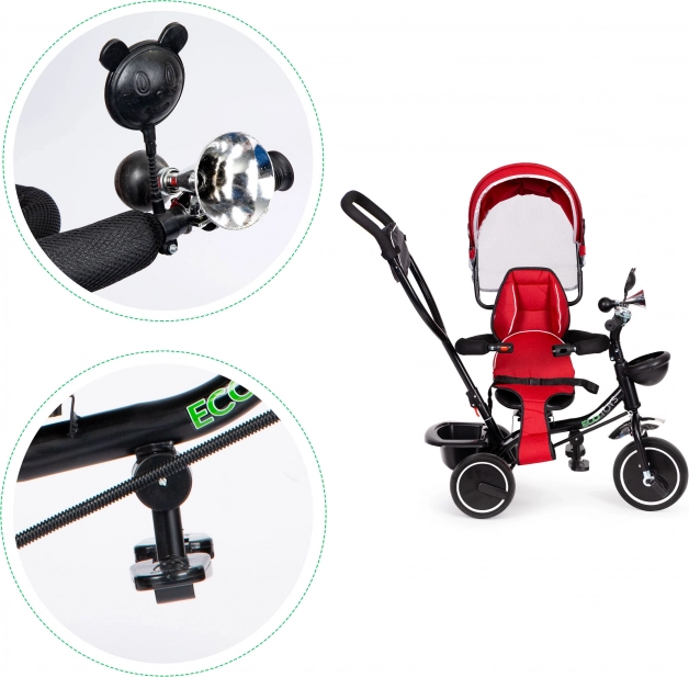 ECOTOYS propose un tricycle robuste et élégant pour les enfants dès 12 mois. Ce tricycle est équipé de :