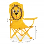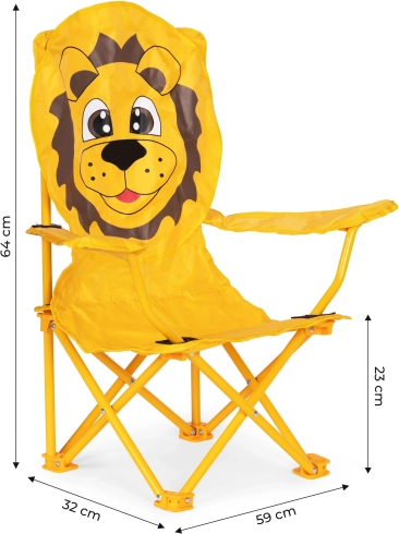 La chaise est fabriquée en tenant compte de la durabilité et de la sécurité des enfants. Son cadre est constitué de tubes d’acier résistants, lui assurant une stabilité et une solidité suffisantes. Le revêtement orange avec un motif de lion attire l’attention et plaira à tous les tout-petits. La housse est en polyester (600D), en plus enduite de polyuréthane, résistant à la pluie et au soleil. Ainsi, la chaise servira pendant de nombreuses saisons et deviendra rapidement votre place assise préférée.