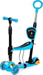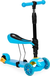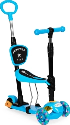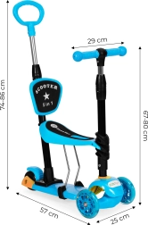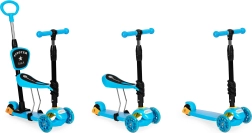 La trottinette est équipée d'une poignée réglable pour les parents, idéale pour les promenades avec les plus jeunes. Grâce aux roues LED, la conduite reste amusante même dans l'obscurité, et la plateforme antidérapante spéciale améliore la stabilité et la sécurité.
