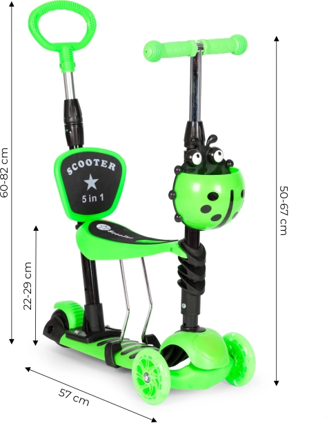La trottinette dispose d'une poignée pour pousser par un adulte, réglable en hauteur (74-86 cm). Idéale pour les promenades avec les jeunes enfants.