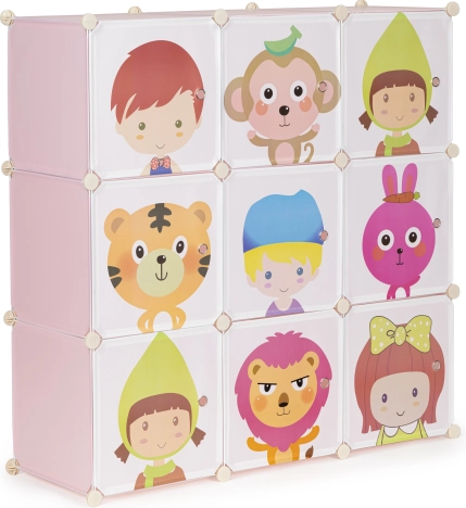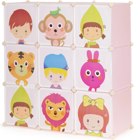 Chacune des 9 étagères supporte jusqu’à 3 kg, ce qui permet d’y placer facilement des livres, des peluches ou des blocs de construction. L’accès facile aux objets rangés permet aux enfants de maintenir l’ordre eux-mêmes.