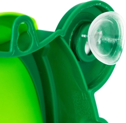 L'urinoir se fixe au mur à l'aide de deux ventouses, qui, une fois correctement pressées, le maintiennent facilement en place. Autre avantage des ventouses : aucun perçage n'est nécessairedans le mur et vous pouvez facilement adapter la hauteur de fixation à la taille de l'enfant. L'urinoir dispose d'un récipient amovible, facile à vider et à nettoyer. Au centre du récipient se trouve un élément rotatif qui s'actionne lors de l'utilisation, ce qui incite l'enfant à viser plus souvent le centre de l'urinoir.