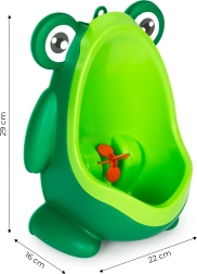 L'urinoir a été spécialement conçu pour faciliter et rendre plus agréable l'apprentissage de l'utilisation des toilettes. Coloré et fonctionnel, il est la solution idéale pour les enfants qui commencent leur aventure vers l'autonomie aux toilettes. L'urinoir en forme de petite grenouille colorée attire l'attention de chaque garçon, ce qui lui donnera envie de l'utiliser.