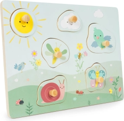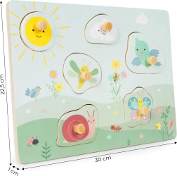 Les pièces colorées aux motifs naturels invitent les enfants à les associer aux bons emplacements. Ils exercent la reconnaissance des formes et des couleurs tout en développant la motricité fine grâce aux poignées en bois confortables.