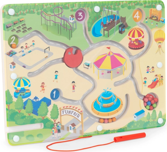Ce jouet éducatif coloré apporte aux enfants l’univers des attractions sur une seule planche. Grâce au stylo magnétique, les petites mains font avancer les billes le long de pistes fermées en toute sécurité, apprenant la patience, la concentration et la coordination œil–main. Des cibles numérotées et codées par couleur guident intuitivement les enfants vers la résolution des tâches.