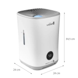 Le contrôle est simple via le panneau tactile LED : choisissez entre les modes automatique, manuel et nuit. Le système EASYWATER permet de remplir l’eau par le haut ou après retrait du couvercle, et l’appareil se désactive automatiquement lorsque le réservoir est vide. Son fonctionnement silencieux jusqu’à 30 dB et sa faible consommation de 18 W préservent votre tranquillité et votre énergie.