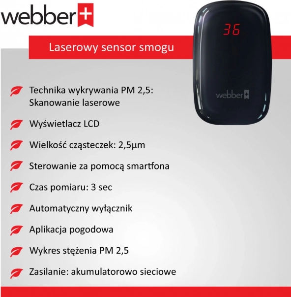 WEBBER SP75 est une petite station, mais d’une grande précision, pour le suivi des particules fines dans l’air. Grâce à la méthode de mesure laser, elle fait partie des solutions les plus exactes pour le monitoring de la qualité de l’air en temps réel. L’écran clair affiche immédiatement les concentrations actuelles et, via Bluetooth, vous transférez les données vers l’application.