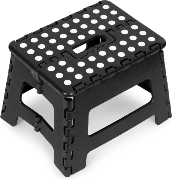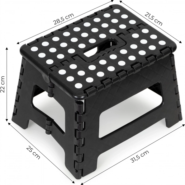 Tabouret polyvalent est un excellent assistant pour le nettoyage, au jardin ou à l'atelier. Les enfants peuvent également l'utiliser pour atteindre plus facilement des endroits plus élevés. Se plie facilement dans une mallette compacte avec une poignée confortable qui économise de l'espace lors du stockage.