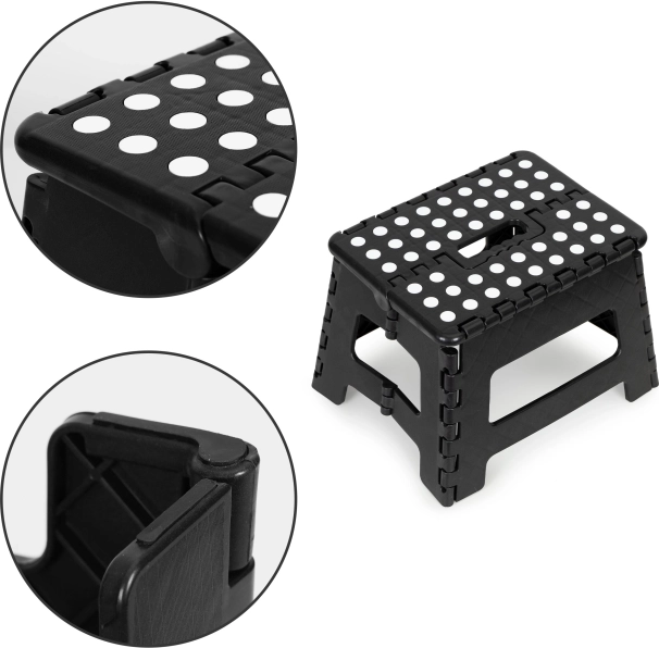 Le tabouret est équipé de pieds en caoutchouc antidérapants et d'une partie supérieure antidérapante, assurant la sécurité lors de l'utilisation.