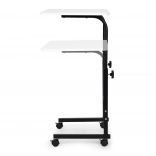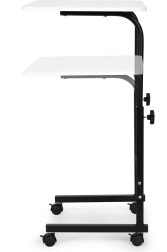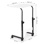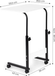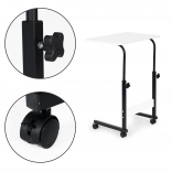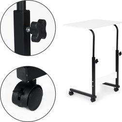 Les pieds verticaux de la table ont deux vis de serrage pour fixer le plateau à la hauteur souhaitée. L'ensemble de la structure est équipé de quatre roulettes pour un déplacement facile. Pour assurer la stabilité, les roulettes comprennent un verrou facile à utiliser.