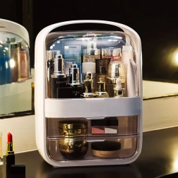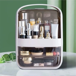Ce coffret cosmétique au coloris blanc élégant vous aide à garder vos soins quotidiens toujours à portée de main. Le compartiment supérieur avec couvercle transparent basculant accueille aisément flacons de crèmes, sérums, parfums et formats plus hauts, tandis que deux tiroirs spacieux maintiennent en ordre les petits objets comme palettes, rouges à lèvres ou pinceaux, protégés de la poussière.